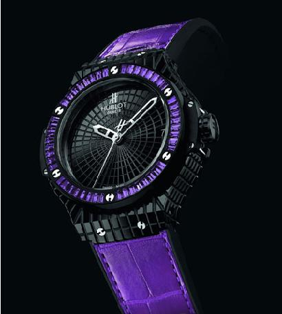 201210-30 Hublot宇舶 Caviar魚子醬系列 紫寶石陶瓷切割錶 Big Bang 魚子醬水果系列-- 午夜幽蓝、炫紫、红韵、蘋果與檸檬……2012年,聲名大噪的Big Bang 黑色鱼子醬系列擁有了全新色彩!彩色系列依然沿用最理想的材料--陶瓷:比精鋼比例硬30%、100%防刮痕、100%防過敏、100%堅固防鏽,再經過專門設計、切割和倒角打磨,使其呈現鑽石般閃爍品质,引領時尚潮流。 錶殼41mm陶瓷;錶圈 18K白金覆黑PVD;鑲嵌48顆方型紫色寶石;錶面 多角切割型拋光陶瓷; 防水100米;42小時動力儲存 分享到: