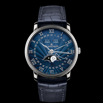 201211-07 Blancpain Novelties 2012: Appreciating the beauty of blue. (寶鉑2012新品露出:一同來欣賞釉漆的湛藍之美吧! VILLERET-6654 全日曆顯示, 月相盈虧顯示, 大三針, 寶鉑特殊專利--錶耳隱藏式調較, 湛藍色釉漆塗料錶面 , 放射狀雕花面盤, 自動上鍊, 72小時動力儲存, 藍寶石水晶褸空錶背 分享到: