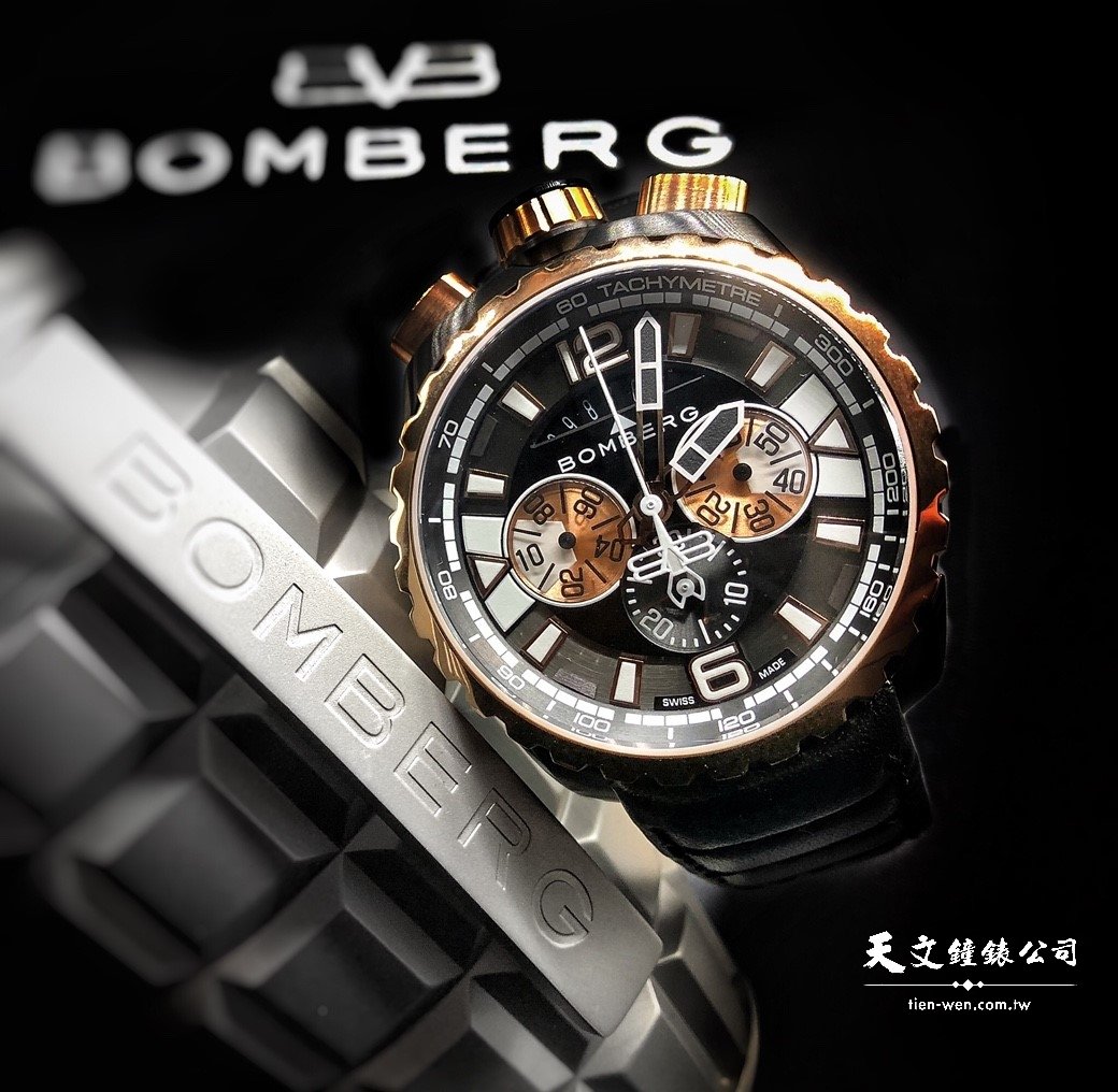 採用最獨特的原素,製作每一件前衛設計的作品。以每位腕錶使用者的生活經驗為出發點,BOMBERG炸彈錶想要打造一個是能夠應用於每一種生活風格,以特製的手工牛皮、丹寧材質及特殊金屬色的錶帶,創造錶帶新浪潮,讓每一款新的腕錶,持續而堅定地邁步於BOMBERG炸彈錶的藍海裡。BOMBERG炸彈錶自創廠以來,致力開創市場的設計先河,採用牛頭式計時按把、不對稱錶耳、多配件對應專利快拆式錶殼系統、視覺系面盤,獨家研發的栓銷裝置,讓拆下的計時器多了靈活使用的功能,轉動錶頭即可與隨附的懷錶組做結合,搖身一變成為一只懷錶。
