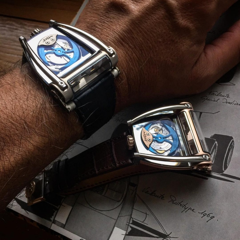 HOROLOGICAL MACHINE N°8藍金色戰斧自動盤的開放式設計