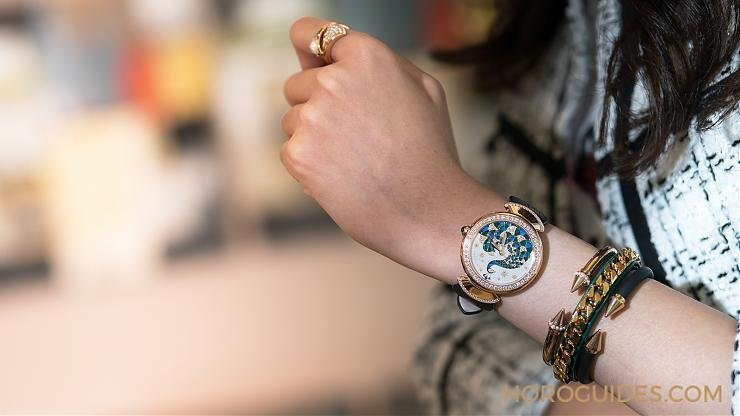 因為我從小就接觸鐘錶,雖然女生都會很喜歡珠寶,但是我對於機械錶也相當喜愛、也有研究,像我自己對於錶的機械原理還是很著迷,我自己也相當喜歡Octo的超薄鏤空錶。在超薄鏤空錶之外,寶格麗在女錶的設計上不會侷限珠寶錶就只有純粹的珠寶設計,當然美感依舊很重要,但是手錶就功能性或技術層面也是相當重要!就像寶格麗女錶也越來越多是搭載機械機芯,但是同時又考慮佩戴時的便利性,因此,多是選擇搭載自動上鍊機芯,而且機械錶的保值性又比石英錶更高,而寶格麗的珠寶錶更結合了許多複雜工藝,讓妳的手錶不只是珠寶,在賞玩性或功能性上都能兼具,機械錶戴在手上才有工藝的溫度!寶格麗在近幾年將複雜工藝與珠寶結合的錶款,其產品的多樣性與同類競品相比來得多許多,也非常精彩,像前幾年的花園系列,在珠寶設計上是相當出色搶眼,同時又兼具機械錶的複雜功能,內外兼具這絕對是寶格麗的獨到特色!