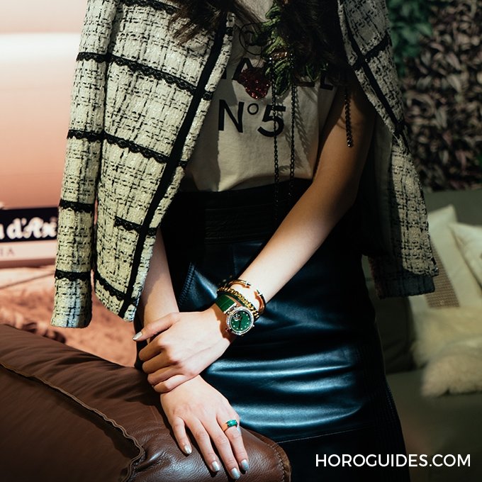 A:因為我自己的個性是喜歡有變化的事物,包括我個人也不會限定於「某種」特定的Style,有時候會喜歡浪漫風格,但有時候又喜歡比較有個性的設計,而寶格麗這個品牌就讓我覺得跟我自己的個性相當契合。因為像是寶格麗許多的作品是相當奢華貴氣,但是在華麗柔美之中又充滿個性,相當多元,而現在的買家,除了在乎技術與工藝的價值,手錶搭配的多樣性也相當重要,因此就算是珠寶錶也不會只能搭配華服或是只能在重要場合或盛大宴會你才能搭配,在一般日常應該也要能夠搭配你的服裝,而寶格麗的珠寶腕錶就是有這樣子的特色,非常百搭!