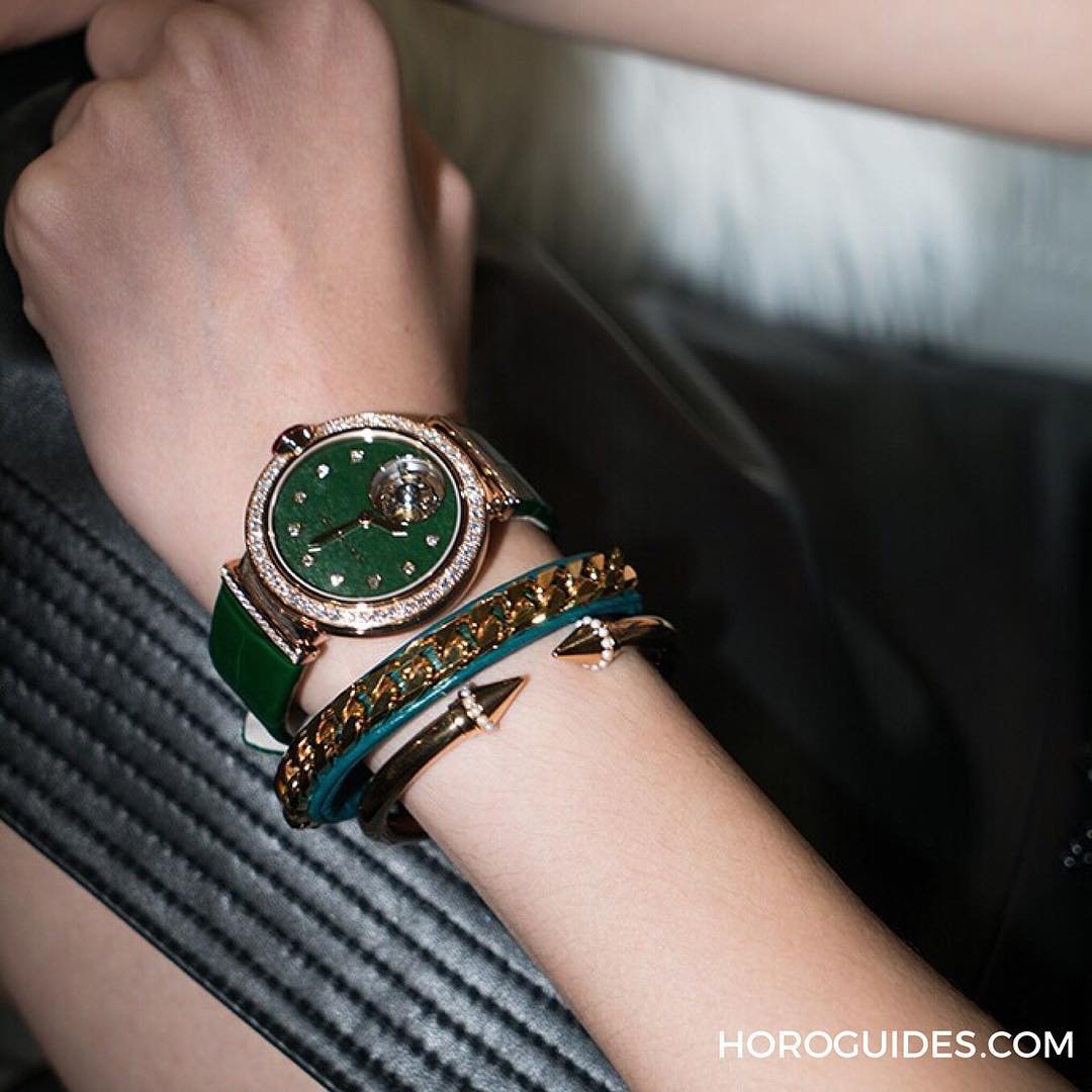 LVCEA陀飛輪採用相當珍貴的翡翠做錶盤設計。
