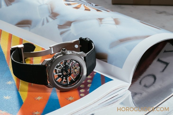 提到寶格麗總會講到義式美學,品牌腕錶設計總監Fabrizio Buonamassa Stigliani在受訪時就曾經提到,其實義式美學不是只有印象中的繽紛奔放,除了美感之外同時也是具備功能性的,研究材質和科技,再透過設計讓它變成一項好看的物件。以這個原則套在水晶陀飛輪裡來說,是完全相符的,細節方面非常講究,但又不失功能性。