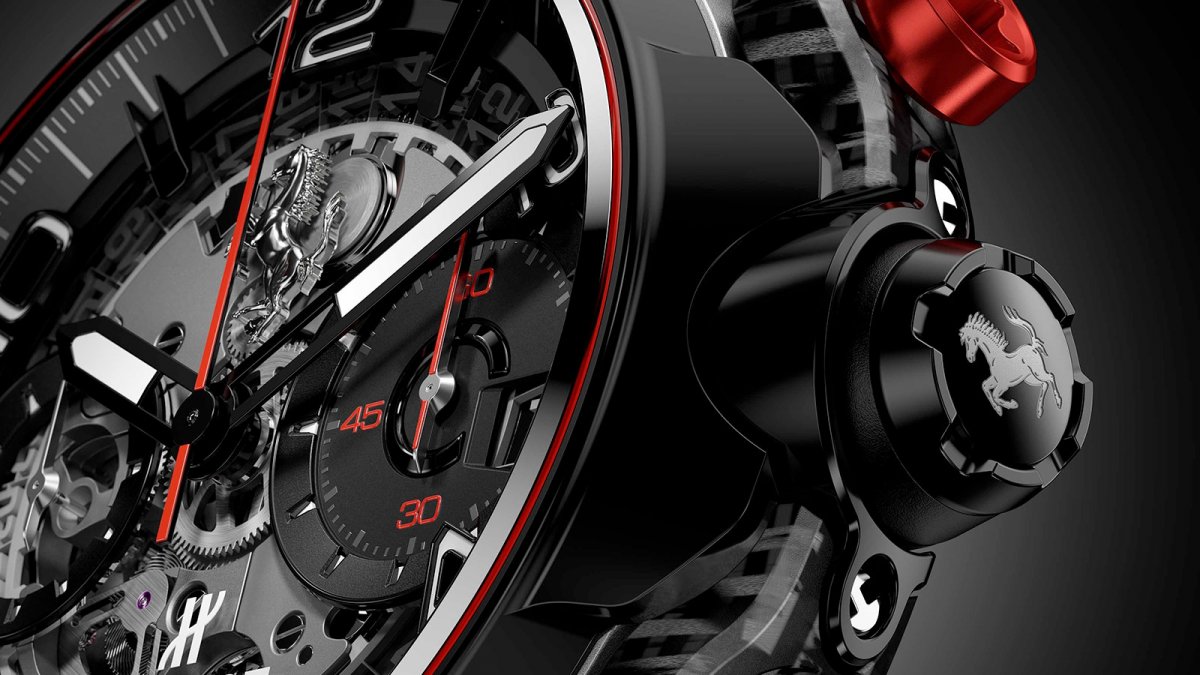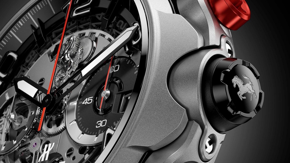 全新經典融合法拉利GT腕錶,專為想要展現當代與精緻風格的機械愛好者而打造。面盤以藍寶石打造,具有絕佳通透性,展現出HUB1280 UNICO機芯的極致精準機械細節,法拉利著名的躍馬標誌設置於12點鐘方向。每一處細節都經過一絲不苟的完美處理,例如經過防眩處理的藍寶石鏡面周圍的紅線,源自傳奇法拉利紅的風格化