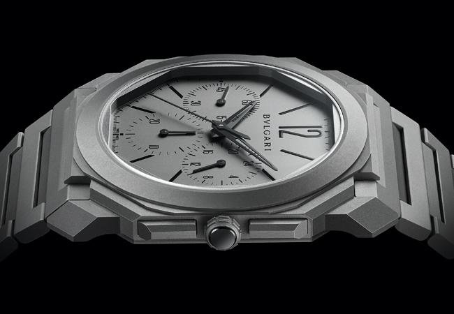 寶格麗BVLGARI Octo Finissimo超薄計時GMT採用的是鈦金屬錶殼,同時其表面經過品牌近年拿手的噴砂處理,特殊的觸感與視覺感受從錶殼一路蔓延到鍊帶上,其實不只是超薄,寶格麗BVLGARI Octo系列這種多切面的外觀造型,在加工處理方面就已經是一大挑戰,但是寶格麗BVLGARI Octo畢竟是寶格麗的招牌作品,技術面的困難早就被克服了。只能說寶格麗BVLGARI這名超薄界的後起之秀實在有料,而他們的極限到底在哪,恐怕品牌自己也不知道。