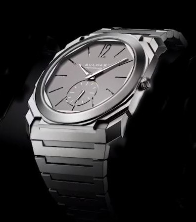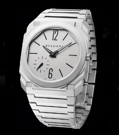 2017年寶格麗BVLGARI Octo Finissimo自動小三針不銹鋼款式,錶殼厚度也僅有5.15mm。以噴砂處理融入經典的不鏽鋼表殼之上,呈現出亮白與啞光的效果
