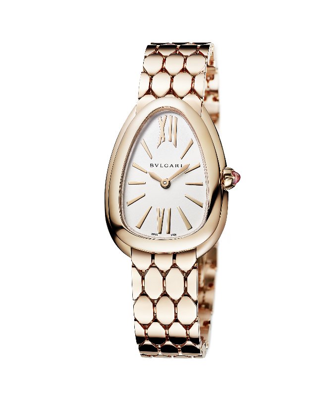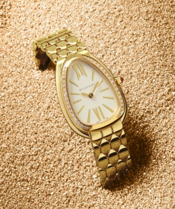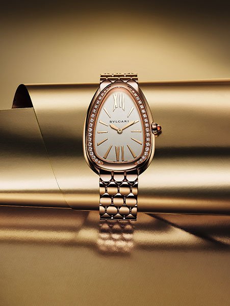 全新寶格麗Bvlgari Serpenti Seduttori 為超人氣寶格麗Bvlgari Serpenti錶款系列最新改款,經由大膽的設計詮釋,華美吸睛,卓爾非凡。生而為金,讓時間顯得更珍貴,在女人生命中美好的時刻綻放金色光芒。不羞於展現其突出外顯的誘惑魅力,盡情放縱其中。此全新系列呈現前所未見的設計,以源自寶格麗Bvlgari Serpenti Tubogas 錶款的經典水滴形錶殼為主題,為寶格麗Bvlgari Serpenti 腕錶開拓全新未來。