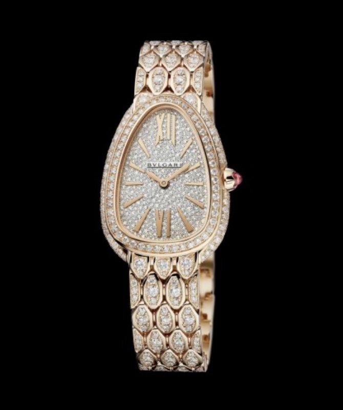 Jessica配戴寶格麗Bvlgari SERPENTI SEDUTTORI 玫瑰金滿鑽腕錶