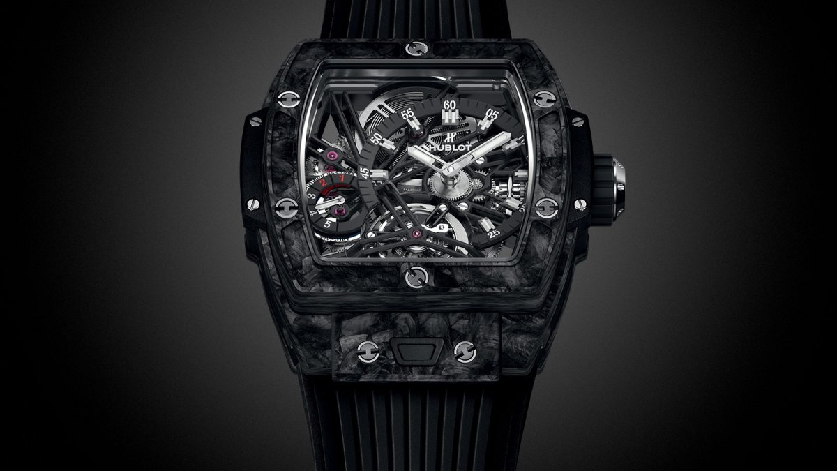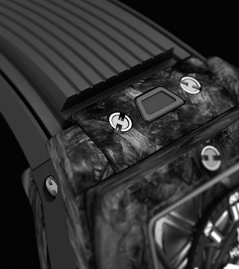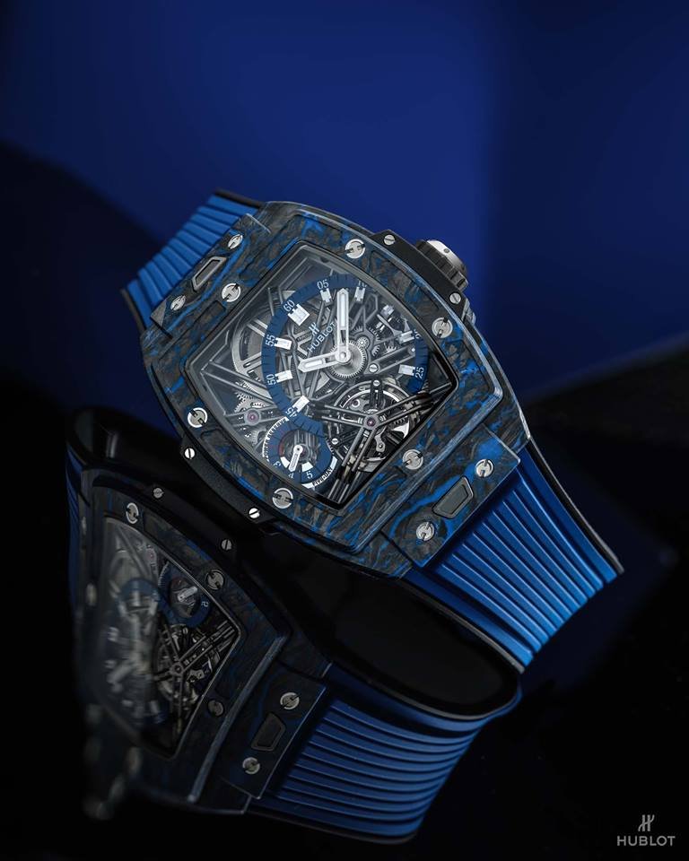 宇舶HUBLOT Spirit of Big Bang Tourbillon陀飛輪腕錶黑色碳纖維與藍色碳纖維兩種錶款「One-Click」單鍵快拆式錶帶裝置
