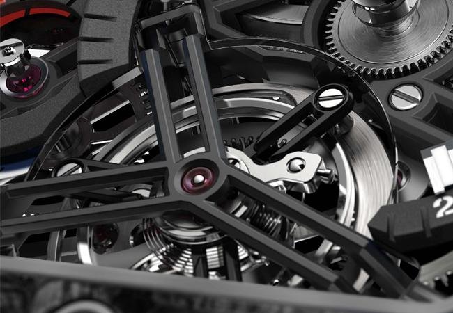 宇舶HUBLOT Spirit of Big Bang Tourbillon陀飛輪腕錶黑色碳纖維與藍色碳纖維兩種錶款結合一分鐘旋轉一圈的可動框架,可抵消地心引力產生的方位差