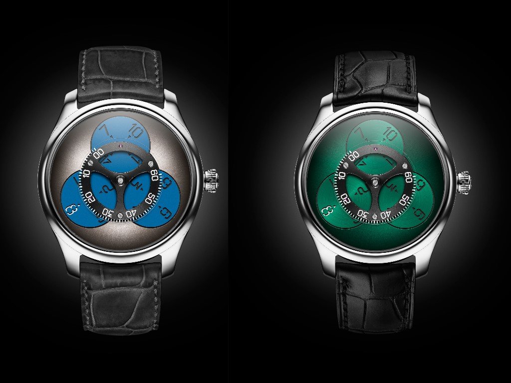 以一個主錶盤顯示分鐘、三個環繞周圍的小行星傳動輪顯示小時:勇創者Flying Hours腕錶(Endeavour Flying Hours)於2018年甫問世便引起轟動。沙夫豪森製錶廠因此決定趁勝追擊,推出兩款全新限量腕錶。一款帶有獨一無二的磷光藍色顯示,讓勇創者Flying Hours腕錶無論日夜都能顯露光彩!另一款採用已成為H. Moser & Cie亨利慕時招牌之一的宇宙綠錶盤。