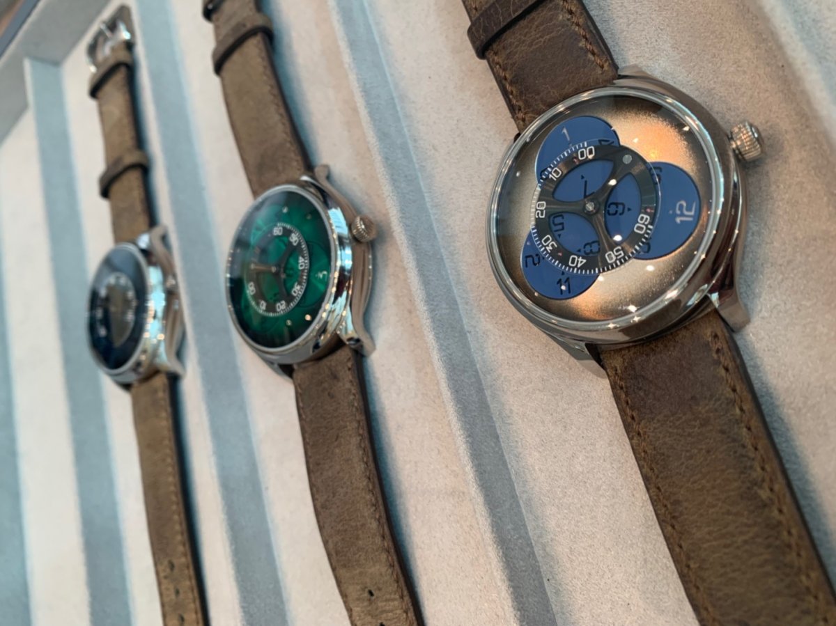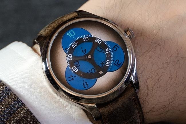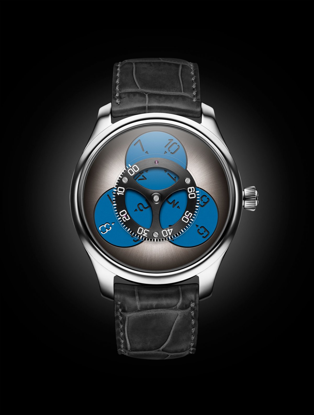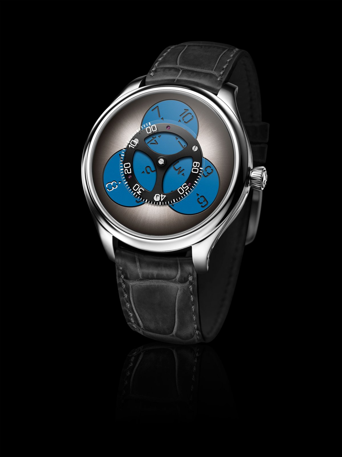 亨利慕時從行星系統中汲取靈感,再以獨特手法重新詮釋,透過刻度盤顯示時間,展現優雅又簡約的面貌。中央的藍寶石主刻度盤以240度區塊顯示分鐘;另外三個較小的刻度盤周圍刻有小時數字。每個行星傳動輪以各自的軸心轉動。