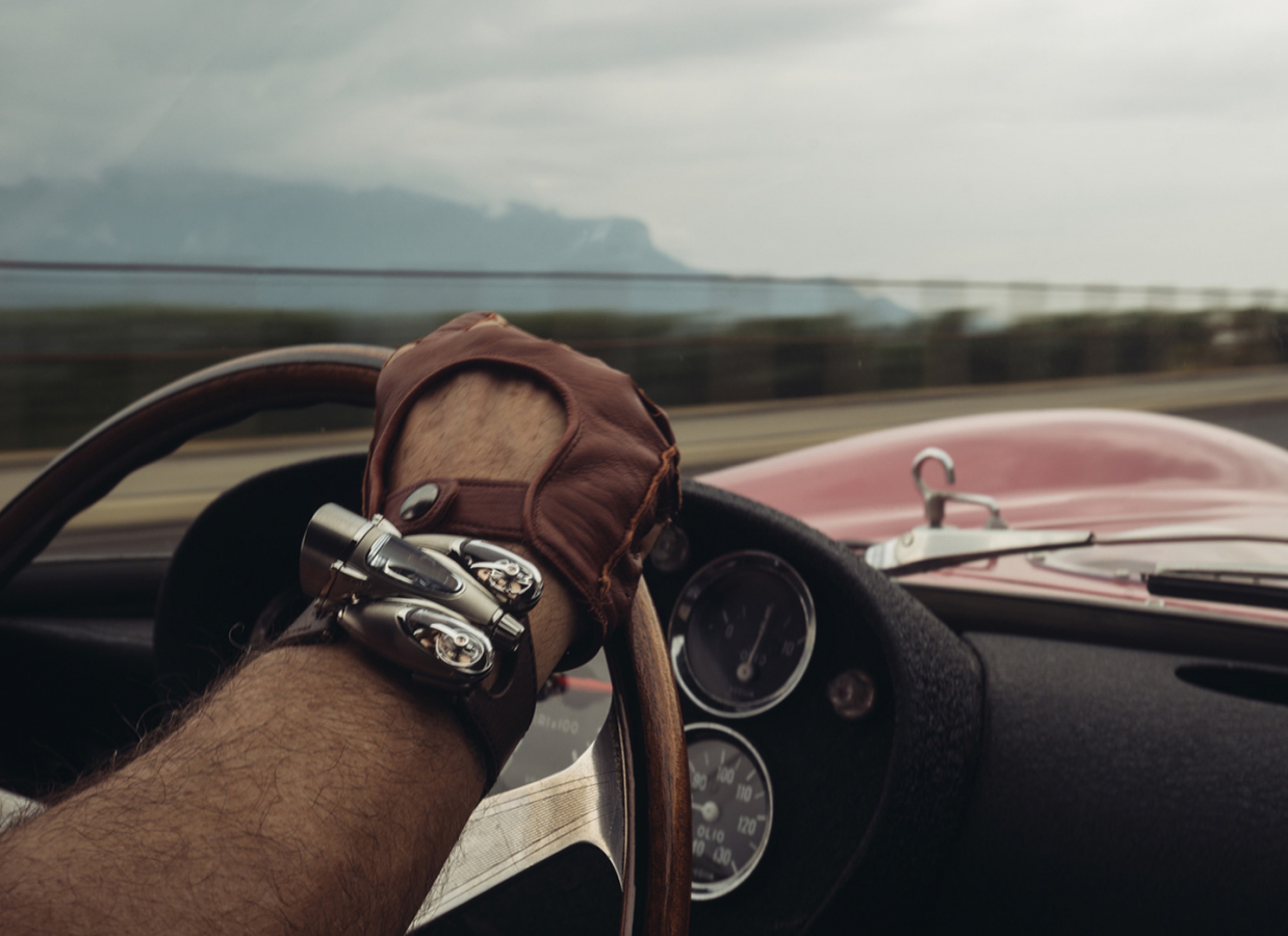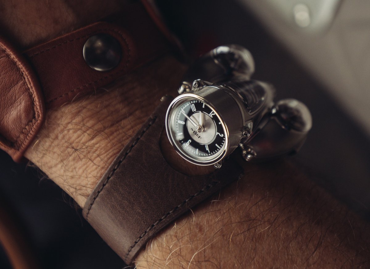 MB&F的HM系列雖然帶有未來主義的色彩,但錶款設計卻其實都源自於創辦人Maximilian Büsser的過往經歷的記憶。全新推出的HM9,則是以1940至50年左右的汽車為典故發想。圓弧流暢的身形,是HM系列在HM6之後融入錶殼的元素,但不同於HM6是向仿生工業設計致意,HM9的流線身段,則是來自那個開始講究設計減少空氣阻力,但卻又還沒發明風洞測試,一切都取決於設計師對於理論想像的年代,卻反而延伸出一種更具想像的美感。