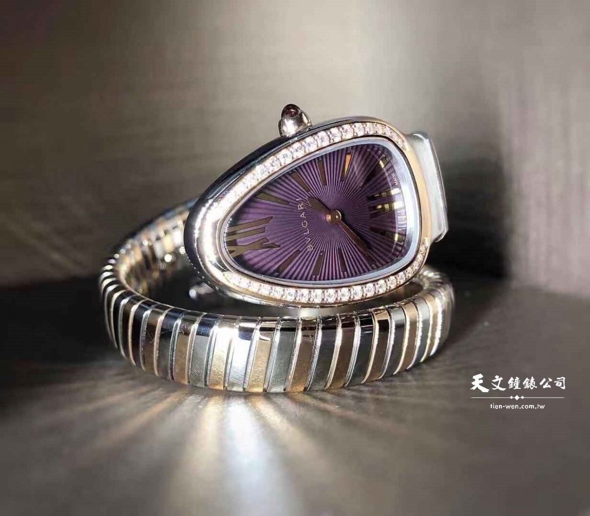 搭配Tubogas鍊帶的寶格麗Bvlgari Serpenti就是迷人,以1920年代瓦斯輸氣管為造型,由沒有焊起透過長金屬條帶包覆而成的Tubogas,宛如蛇身蜷繞服貼於手,想戴就繞進手腕即可。金屬的打磨質感也很細緻,蛇頭形狀般的面盤也做了放射狀紋飾,流暢的曲線和鍊帶相連,形成一體成形般的整體感,是手錶也是手環的寶格麗Bvlgari Serpenti Tubogas就是一款讀時搶眼,在充滿現代感的變化。展示了寶格麗Bvlgari對於蛇形主題的狂熱,綜觀寶格麗Bvlgari女錶的發展,無論外型還是走時的精準度皆展現令人無法抵抗的美學魅力。
