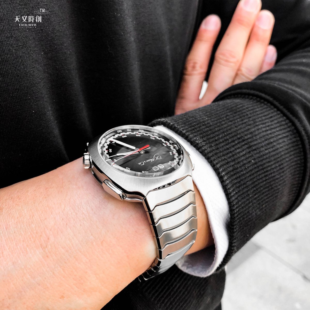 全新鍊帶線條流暢、佩戴舒適性高,精緻的亮、霧面打磨展現高級運動錶的質感