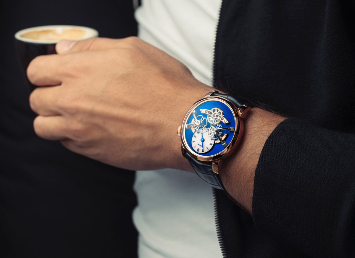 Legacy Machine No.2(LM2 RG BLUE 玫瑰金湛藍版) 兩枚擺輪與差動齒輪三方形成了完美的平衡