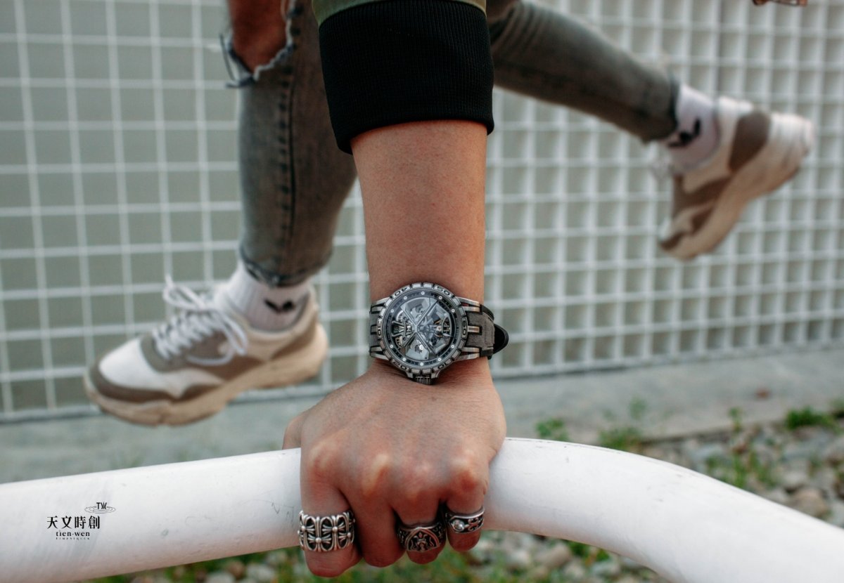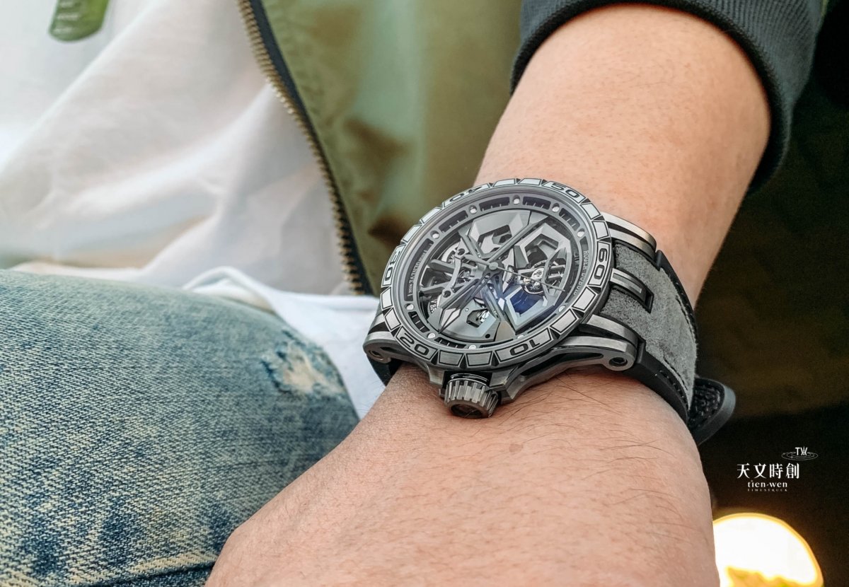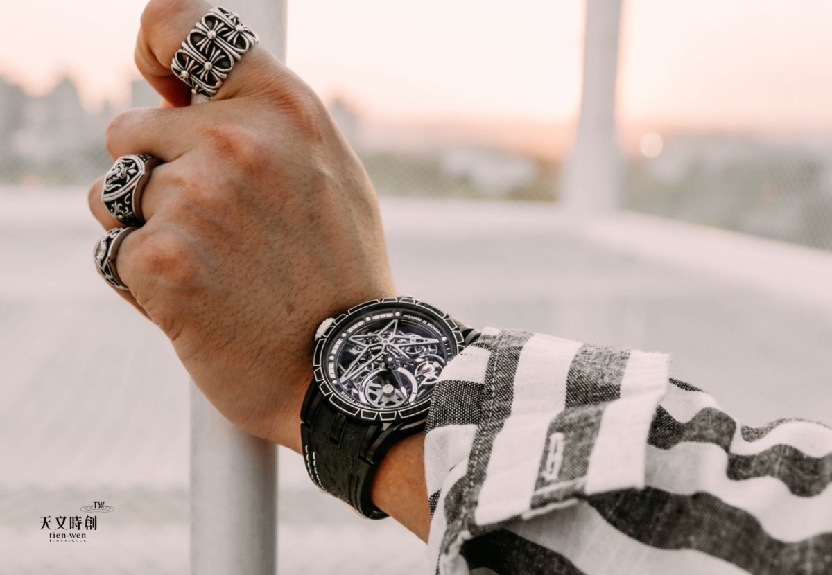 正宗的超跑腕錶就是羅杰杜彼,把超跑車體上所有的元素都微縮到手錶設計裡,創造人車一體、風格狂暴的純粹速度精神。