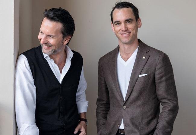 (左) Maximilian Büsser (右) Edouard Meylan;此次的新品發表展現兩家品牌在市場上亦敵亦友的合作關係,每款腕表限量15只的由來為呼應MB&F15周年,也慶祝亨利慕時回