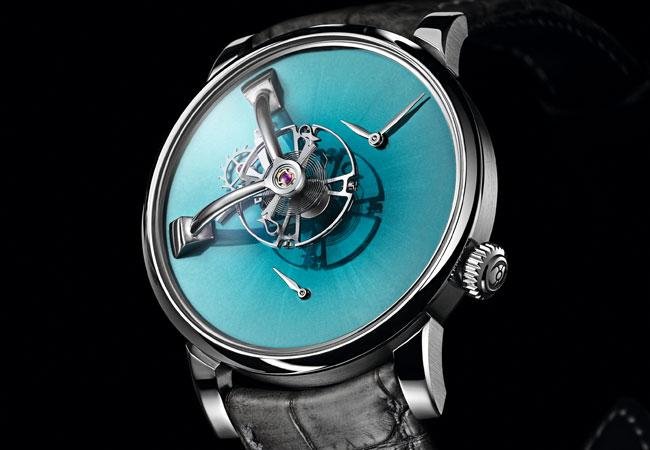 勇創者陀飛輪腕錶H. MOSER X MB&F。直徑42毫米不鏽鋼錶殼/時間指示、陀飛輪/HMC 810 三維立體自動上鍊機芯,動力儲存72小時/限量15只/參考價NTD 2,680,000