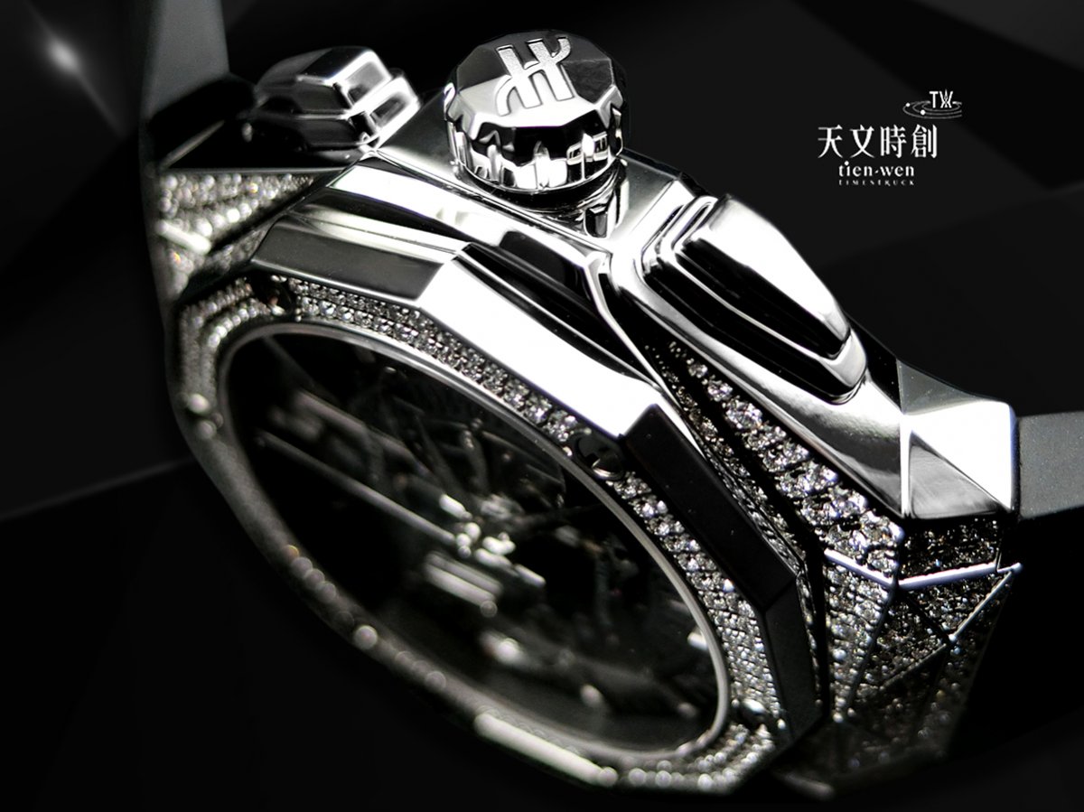 Orlinski Chronograph Diamond/鈦金屬材質/時、分、小秒、日期顯示/錶殼鑲鑽248顆,約重2.2克拉、錶圈鑲鑽156顆,約重0.8克拉/藍寶石水晶鏡面/防水50米/錶徑45m