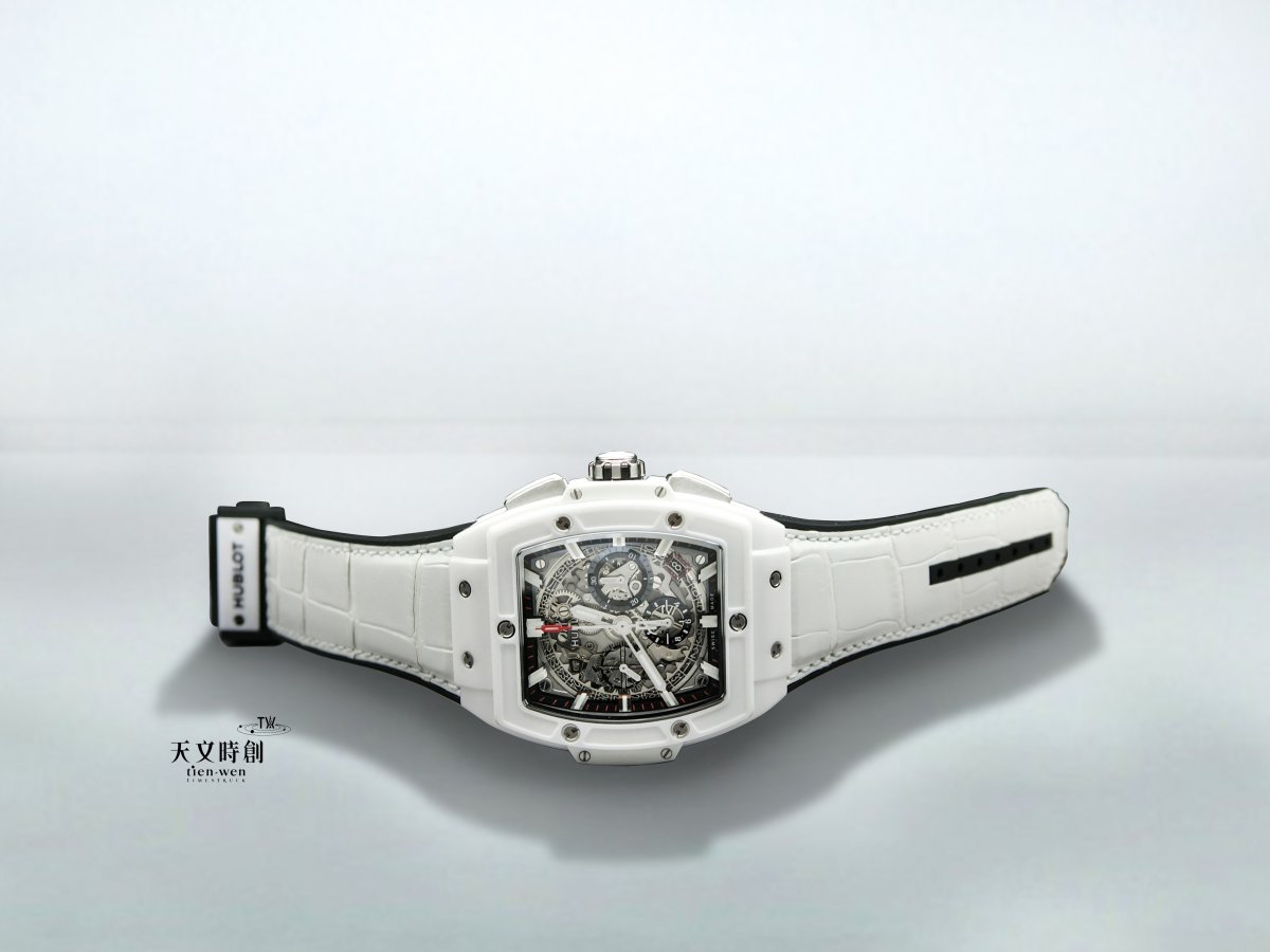 宇舶的陶瓷厲害就在於高超的”加工技術 ”,讓陶瓷於結合高溫高壓的燃燒情況下,只燃燒陶瓷本身但不把顏料燃燒掉是一款令人沈迷的白色陶瓷腕錶,多層式的組裝讓錶殼整體更為立體,白色陶瓷的錶殼邊線也增添了銳利感, 第一層錶圈上的六顆H型鈦金屬螺絲貫穿整個錶殼正反面,像鎖在藍寶石水晶鏡面裡的珍品一樣,讓配戴者更愛不釋手。