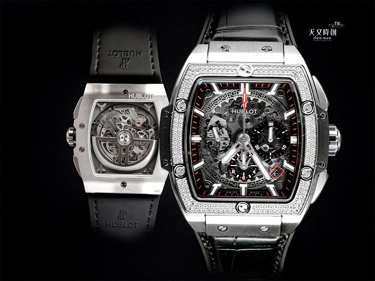 靈魂酒桶鈦金屬閃鑽計時碼錶/HUB 4700自動上鍊機芯/直徑42mm/緞面拋光鈦金屬 /藍寶石水晶鏡面/時間指示,日期、計時功能/防水100米/ 50小時動力儲存