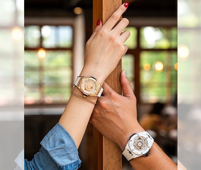 現在回想,我好像只記得她撩頭髮的樣子,淺藍色的Spirit of Big Bang穿梭在她烏黑的髮絲中。我必須要再說一次,她跟她的錶真的太顯眼了。而就在那時,我好像還為我先前的認知加上新定義—會選擇這只腕錶的女孩,不只大方、自信,個性中一定還帶了些可愛。