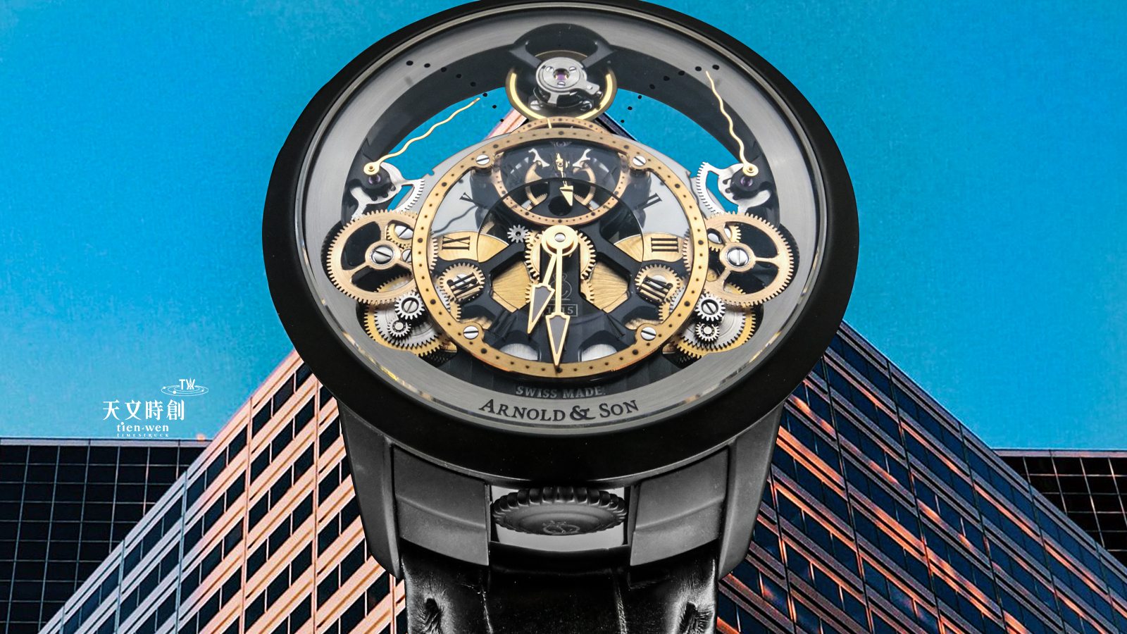 ARNOLD & SON Time Pyramid時間金字塔黑色PVD款 古典內在搭配現代黑時尚更適合日常搭配