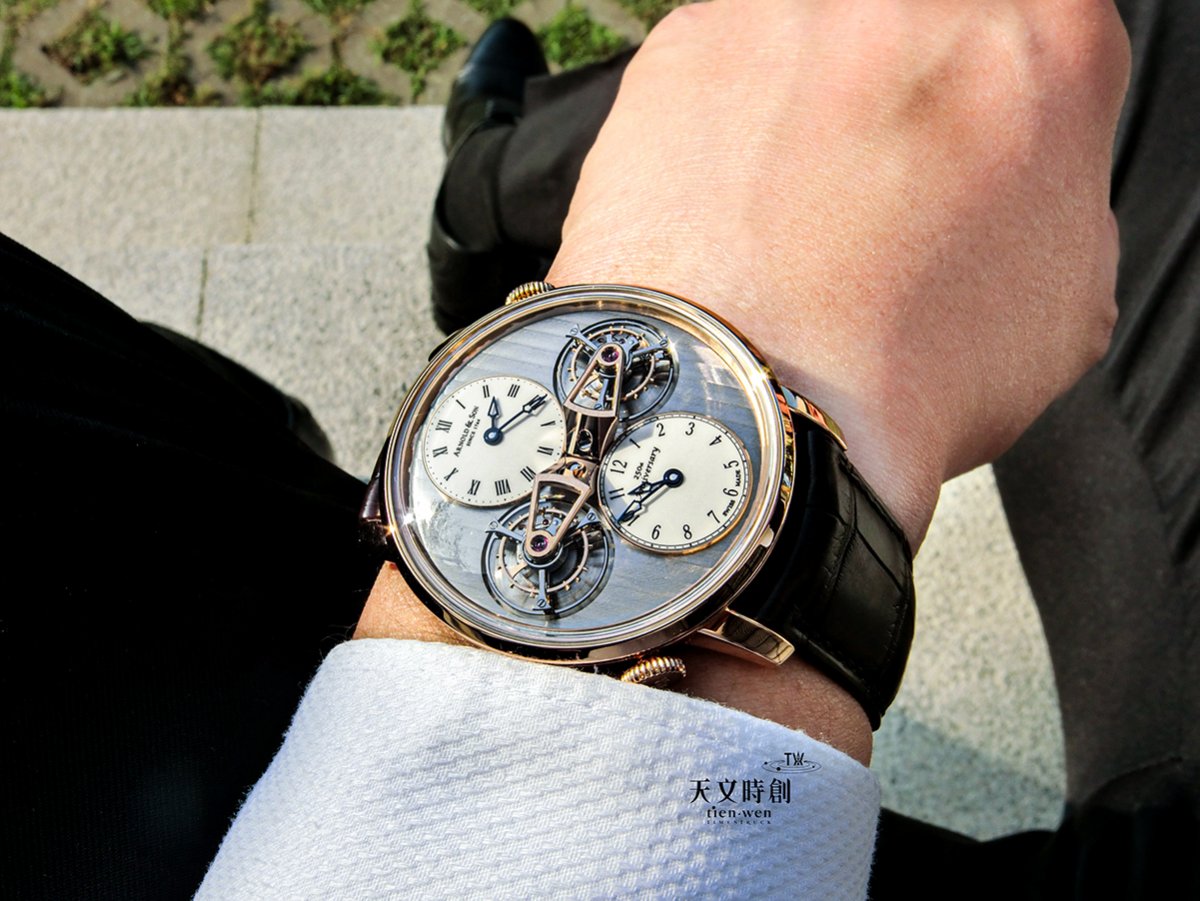 亞諾錶ARNOLD & SONDTE雙陀飛輪兩地時區腕錶 讓英倫紳士更顯得穩重與貴氣非凡
