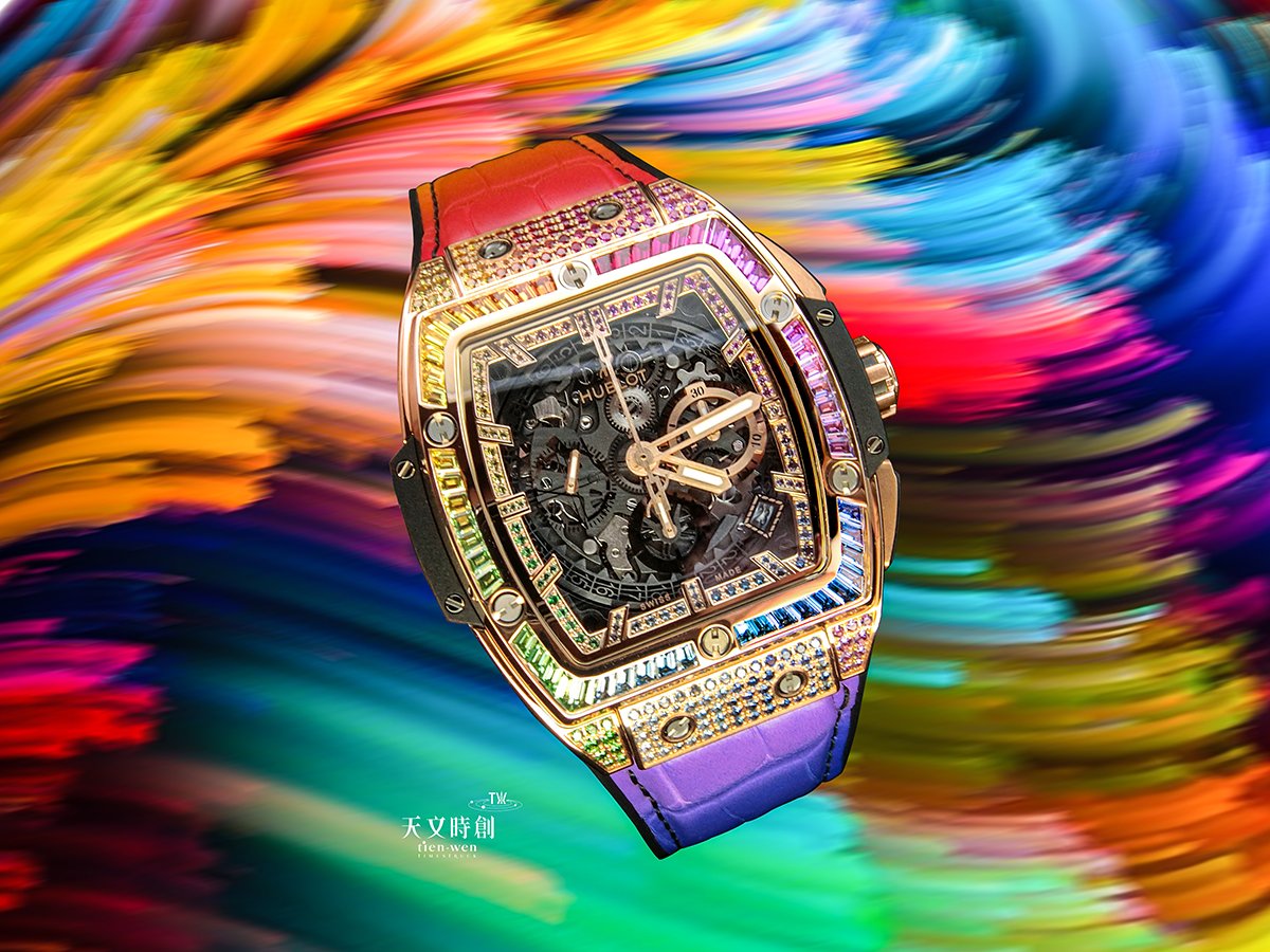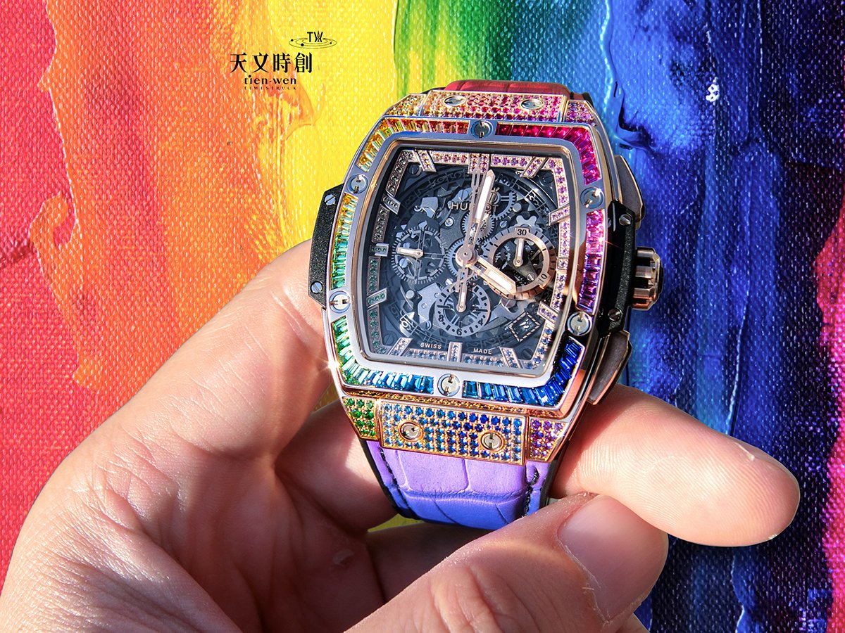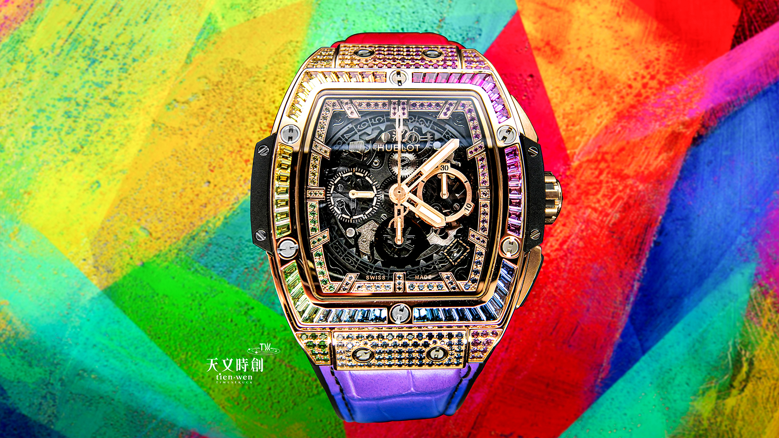 2020最讓人需要充滿愛與希望的一年,年初HUBLOT宇舶錶已載杜拜舉行的LVMH Dubai Watch Week 發表了最新作品Spirit of Big Bang Rainbow King Gold彩虹寶石王金計時腕錶,從外觀上就能看出,此錶展現出了彩虹的絢麗,也象徵著希望、和平歡樂及樂觀的彩虹意象,都在這支Spirit of Big Bang Rainbow身上表露無遺。