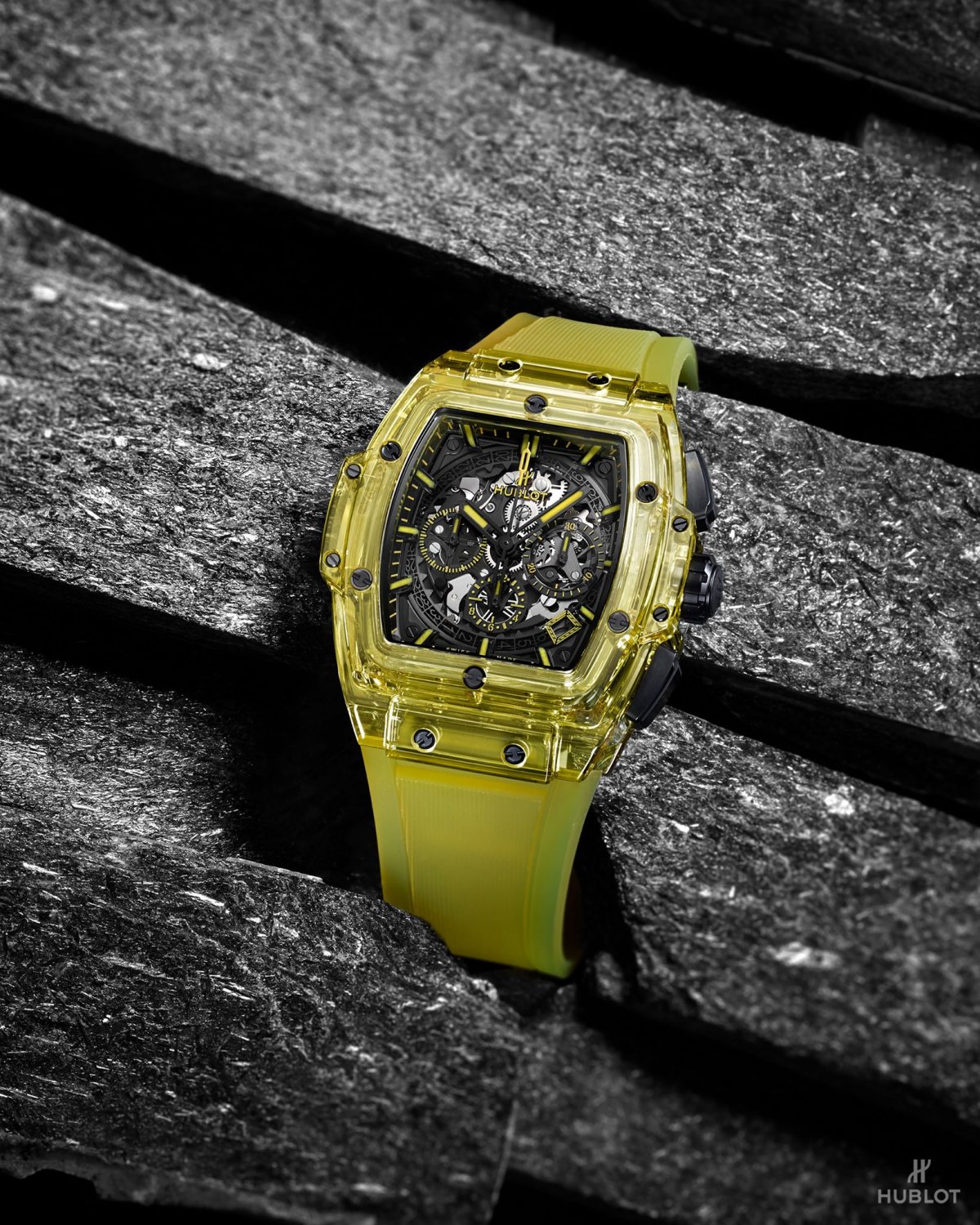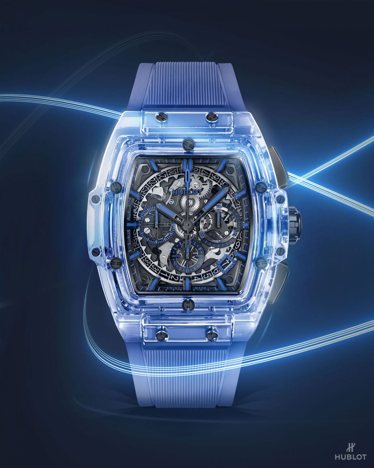 成功挑戰機械加工與化學技術極限的瑞士頂級製錶品牌HUBLOT宇鉑錶,成為藍寶石技術的領導者,不斷在彩色藍寶石技術上精益求精,腕錶的外部零件不再是妨礙,讓內部最美的機械結構與複雜機芯毫無保留,讓人盡收眼底。2019年品牌再次研發出全新色調,推出Spirit of Big Bang黃色藍寶石腕錶和Spirit of Big Bang藍色藍寶石腕錶。