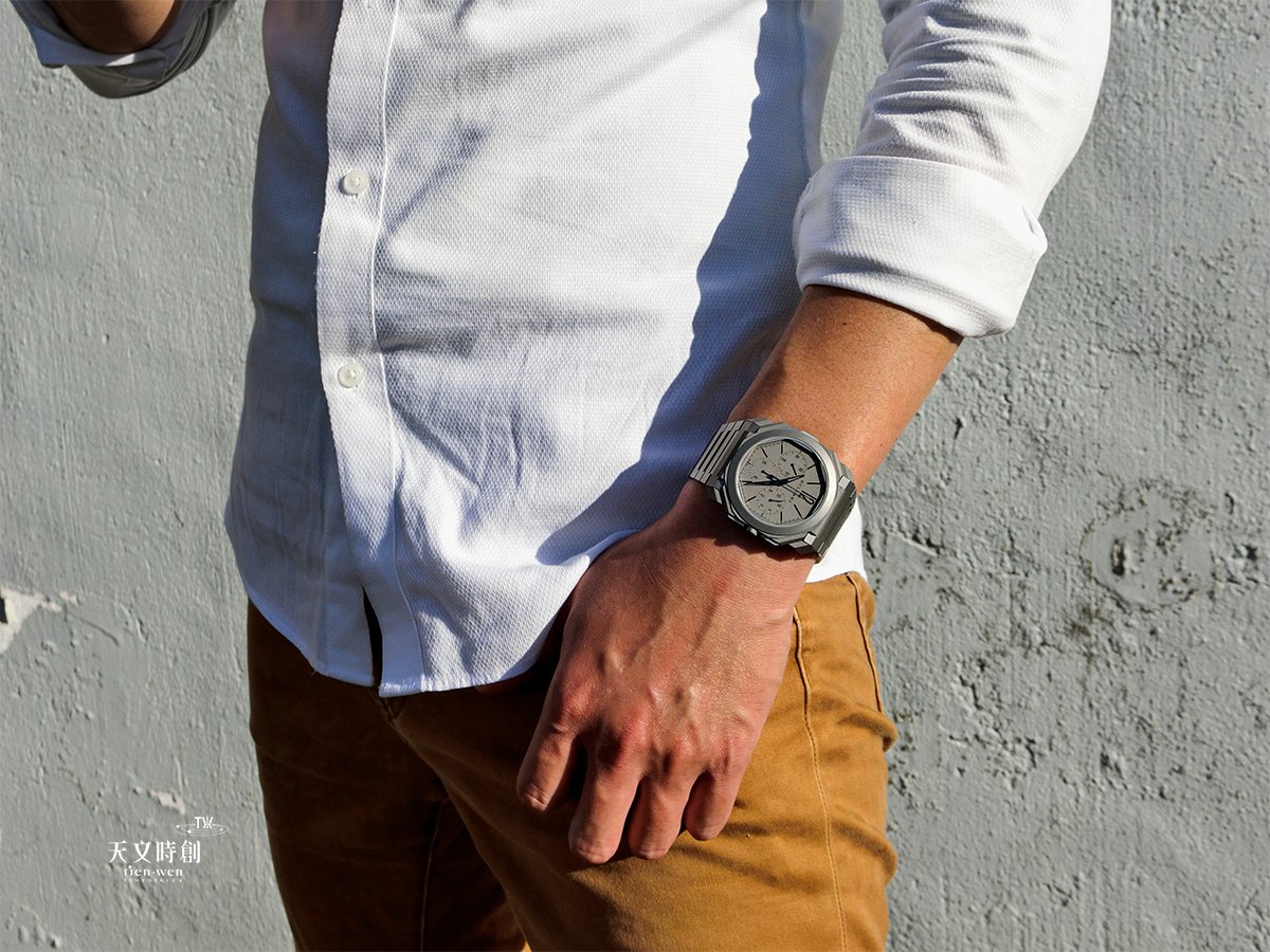 超薄腕錶Bvlgari Octo Finissimo 融入一體的服裝跟外表,讓配戴者能夠有品味的面對各個場合