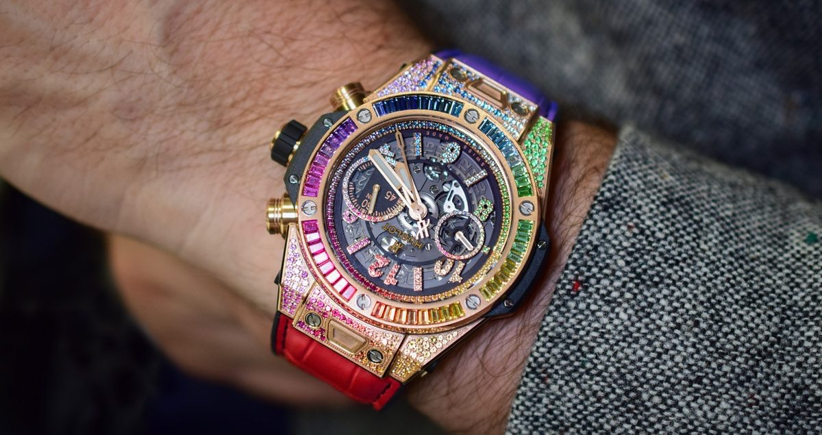 手錶與寶石鑲嵌的結合一直以來都是宇舶的強項。而近期宇舶再次獻上耀眼多彩的全新Big Bang Unico King Gold Rainbow 45mm彩虹寶石計時碼錶,讓佩戴者手腕間光彩奪目。