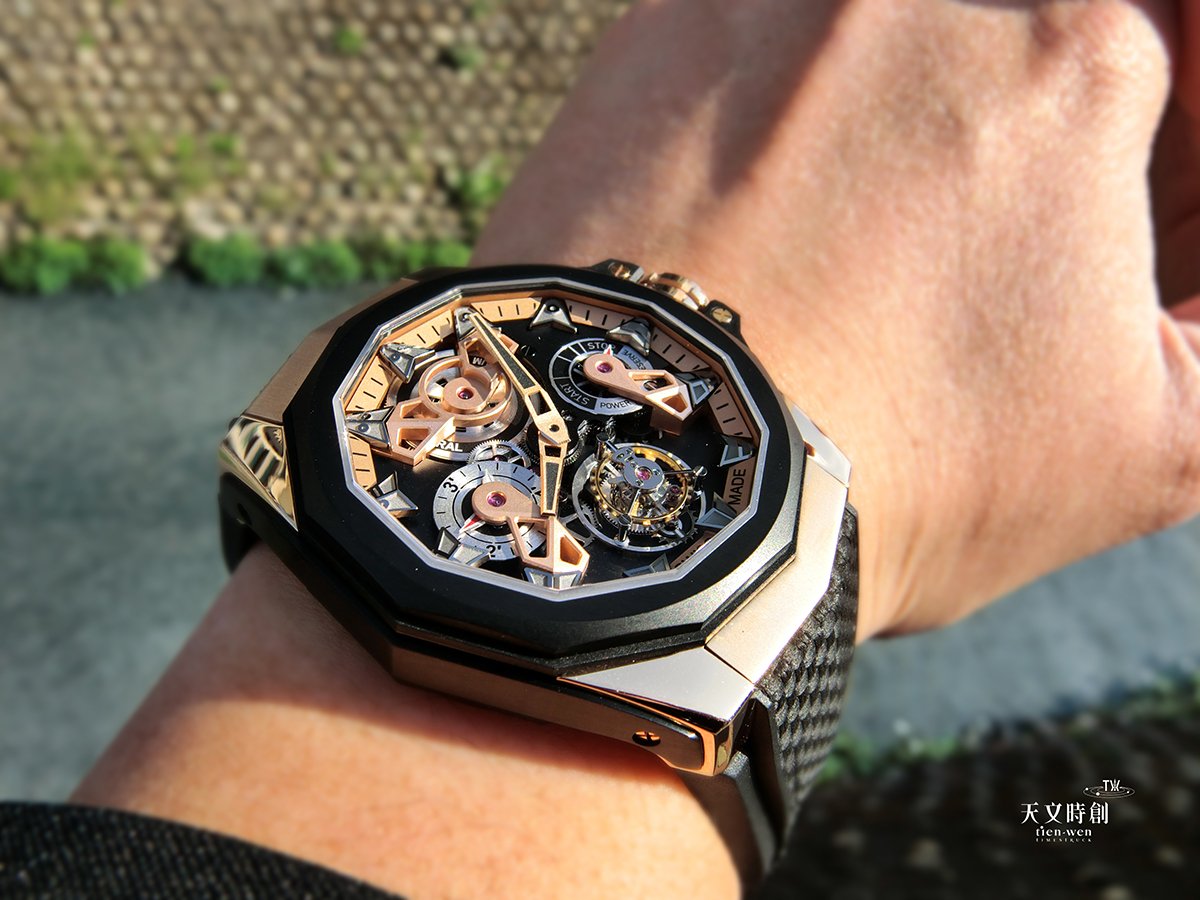 海軍上將 ADMIRAL AC-ONE 45 OPENWORK鏤空陀飛輪腕錶/45mm/18K玫瑰金與黑色PVD鈦圈錶殼/12角形防眩處理藍寶石錶鏡/CO297自動上鍊/陀飛輪/動力儲存顯示42小時