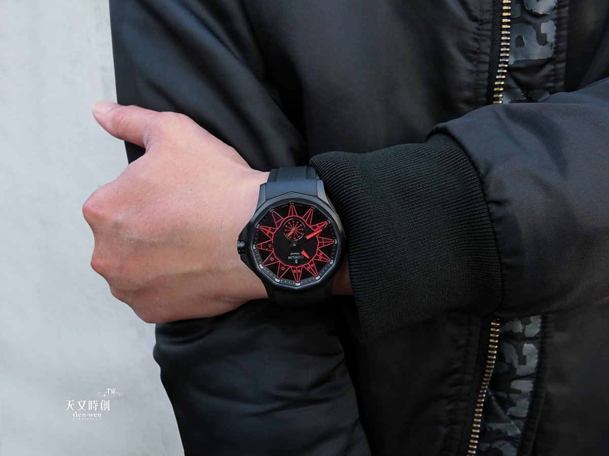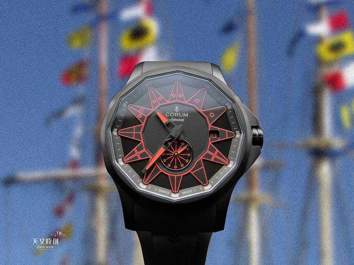CORUM崑崙錶海軍上將極黑紅,讓暗黑神秘系放大細節亮點