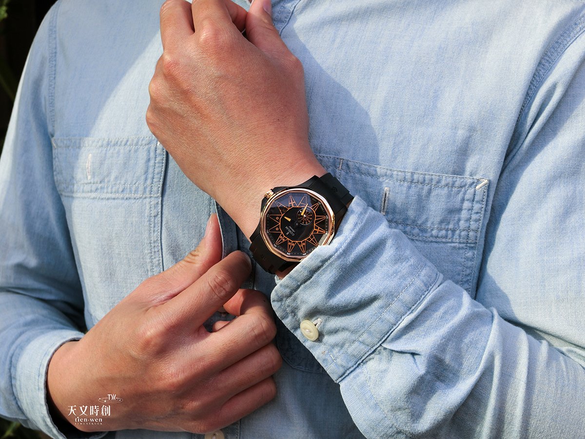 錶帶部分則是採用黑色硫化橡膠,配以黑色PVD塗層處理錶扣,貫徹酷黑造型。腕錶搭載具備42小時動力儲備的CO395自動機芯,並擁有深達50米的防水功能。