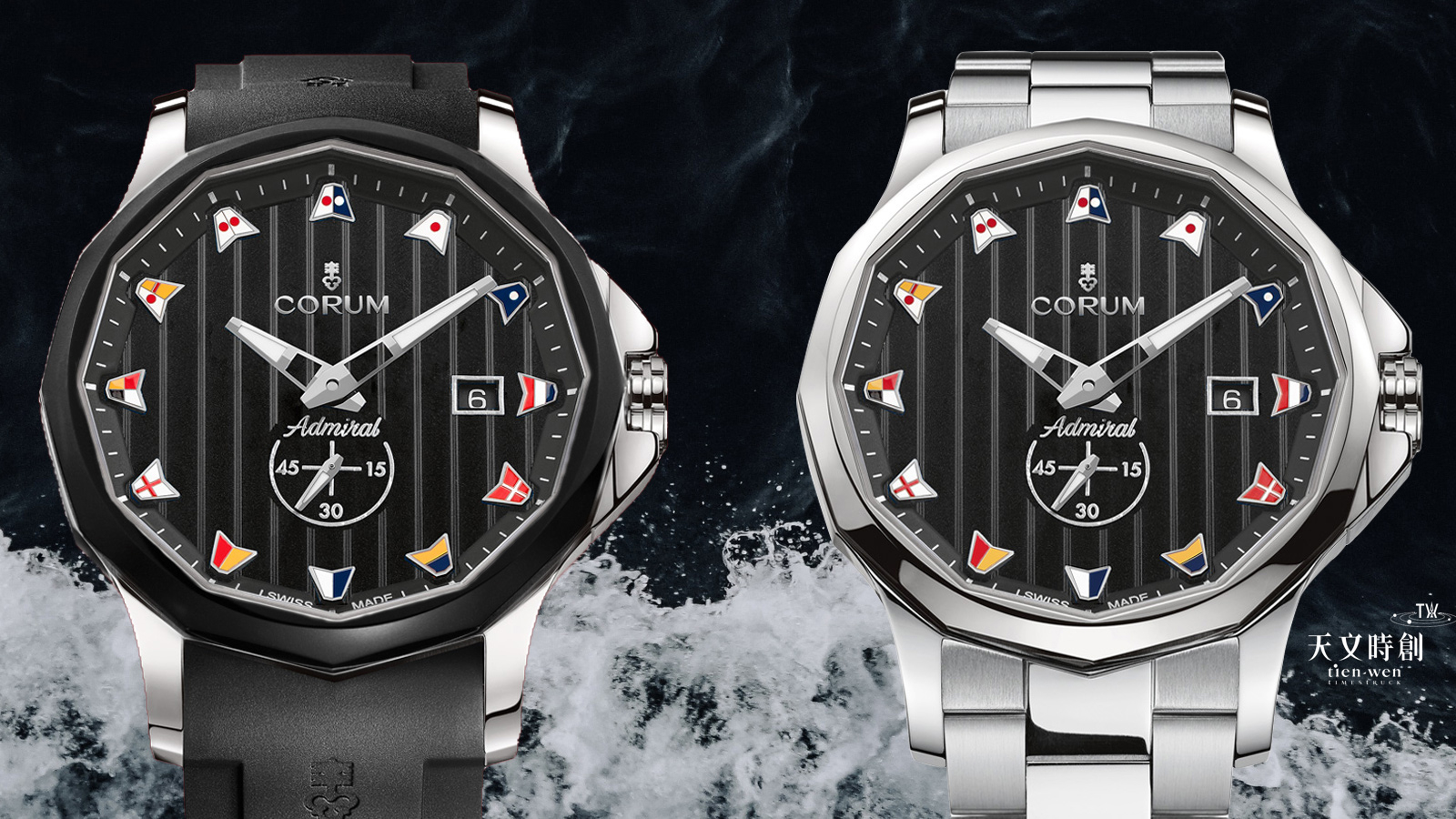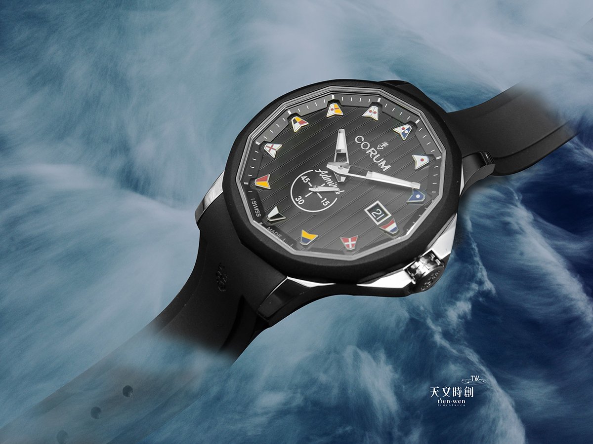 長久以來,海軍上將一直是CORUM最具代表性的系列,因為品牌創辦人之子JEAN-RENÉ BANNWART對帆船賽的熱愛,長期贊助英國帆船俱樂部(RORC)的海軍上將盃帆船賽,因此在品牌創立五年之後(1960年)就推出這個系列。此系列絕對是鐘錶產業裡獨一無二的原創設計,不管是十二邊形的錶圈還是飄揚在錶盤上的十二面「國際海事信號旗」都是富含意義的絕對性特色。