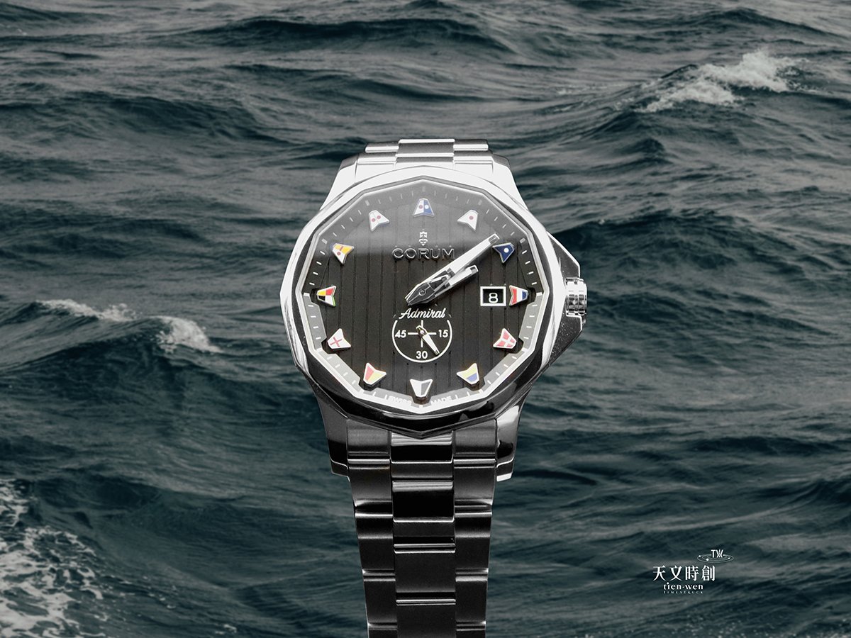 海軍上將 CORUM ADMIRAL 42 AUTOMATIC腕錶對於海上的元素暸若指掌,對於想要配戴海軍上將系列,但不想過於花俏或是低調的配戴者,CORUM ADMIRAL 42 黑甲板面款,適中的錶徑與低調的配色,不論鏈帶或是膠帶款都是很好的選擇,大方沉穩又不失特色。