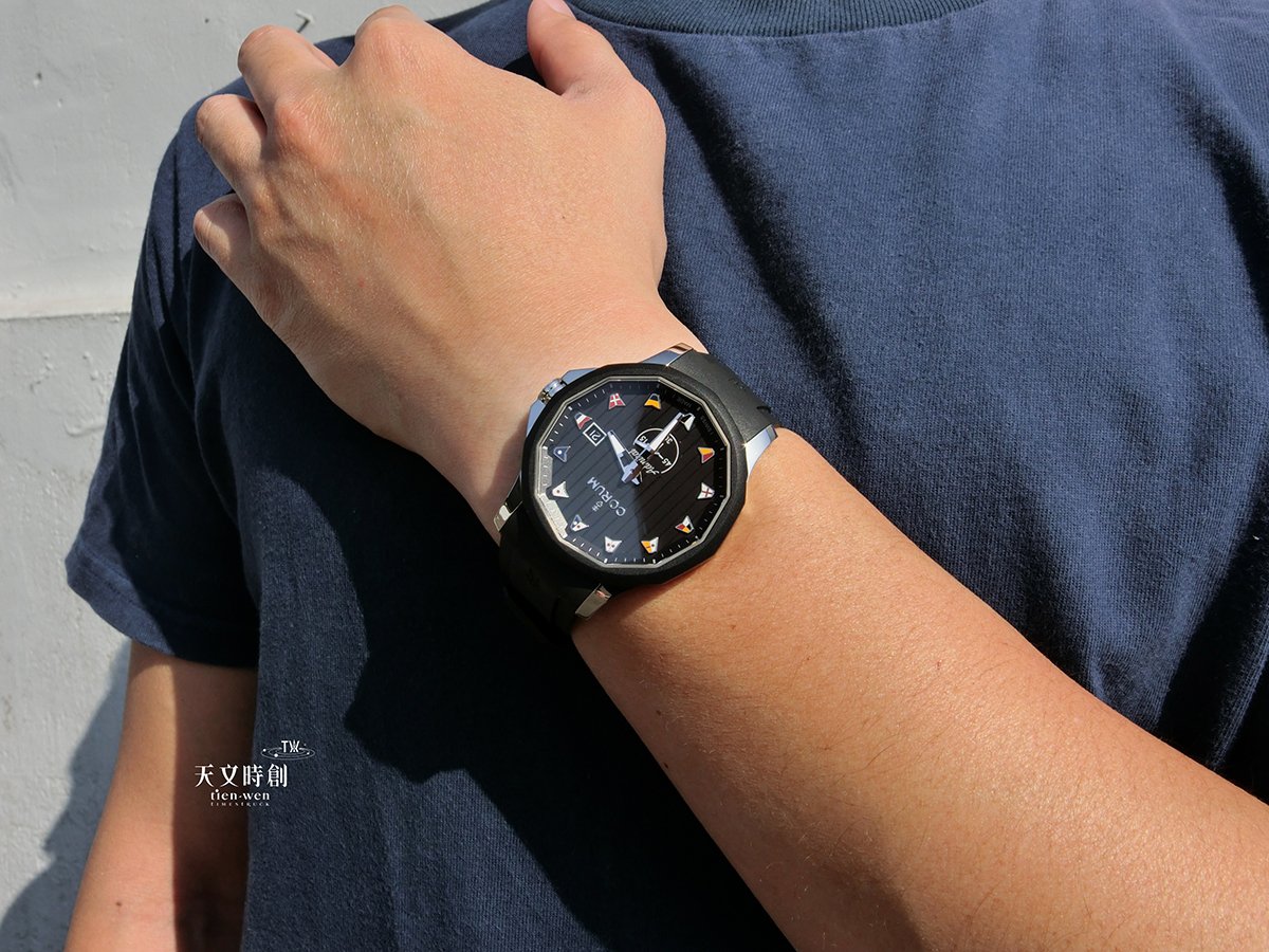 CORUM ADMIRAL 42 AUTOMATIC海軍上將黑甲板面橡膠帶款,對比的銀與黑讓內斂中顯得活潑