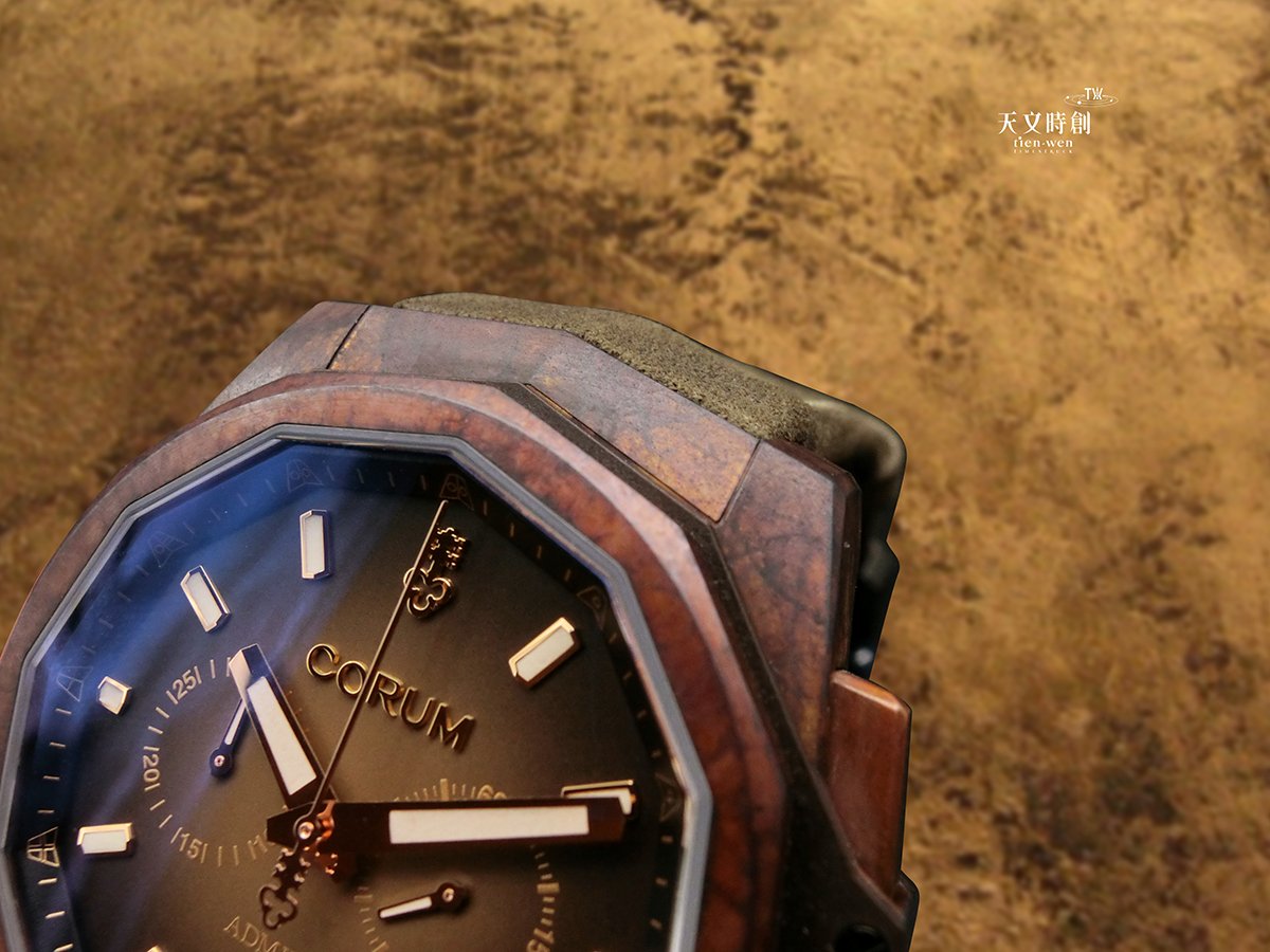 CORUM海軍上將AC-One青銅錶 經過舊化處理、固定色調,不會像一般青銅繼續氧化,能維持最佳的復古色澤。
