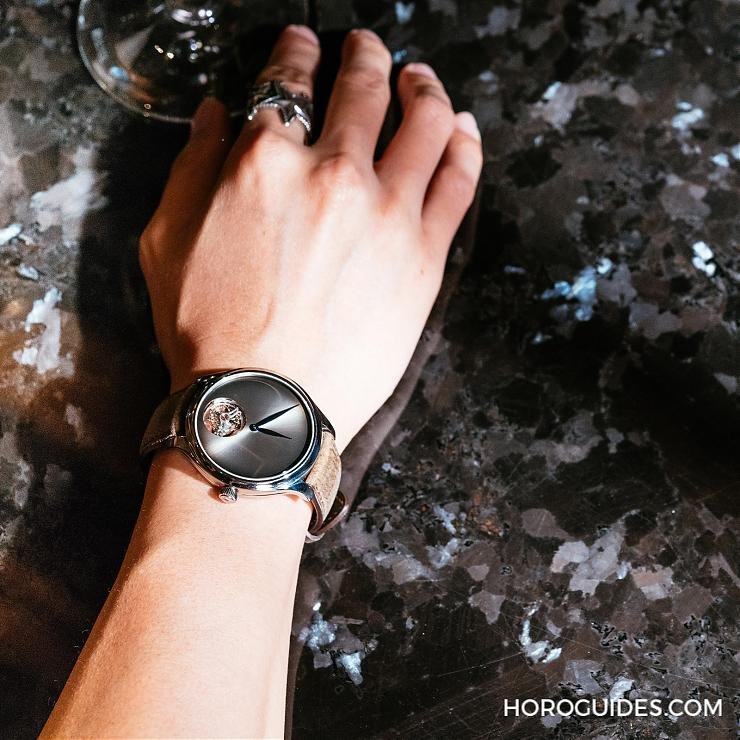 Endeavor Flying Hour的星形輪顯時盤就非常特別,不同一般的顯時設計,此外,亨利慕時錶款的煙燻面設計也是他們家的特色,品牌之前推出的煙燻綠面錶款我也有注意到,不過亨利慕時旗下的“Purity”極簡設計就沒有特別打動我,因為我覺得手錶還是會有讀時的需求,但是像是這只Endeavour Tourbillon Concept我就覺得不錯,因為在面盤6點鐘方向可以看到陀飛輪帶出整個視覺焦點,我覺得這個設計讓佩戴者能夠專注在高複雜的陀飛輪之上,工藝之中更兼具設計。