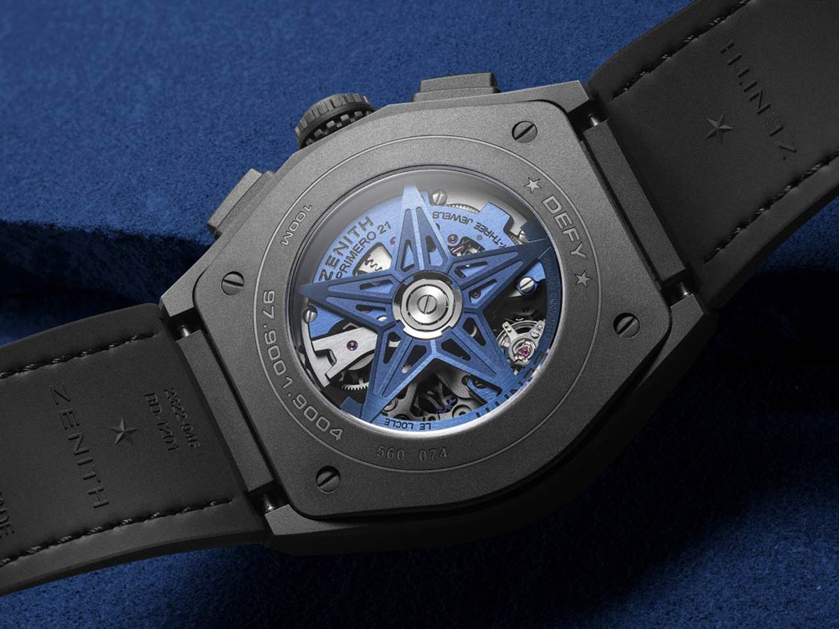 錶背可見El Primero 9004自動上鍊機芯,零件數293枚,寶石數53顆,振頻5赫茲。