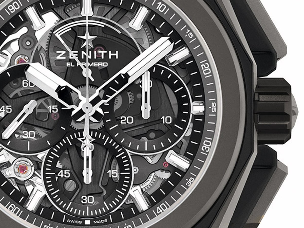 腕錶配備透明藍寶石水晶玻璃錶盤,略微交疊的超大半透明計時盤鑲嵌於水晶錶盤上,更顯立體,讀時清晰。此外還採用超大指針和鑲嵌時標,並覆以Super-LumiNova超級夜光物料。在透明錶盤底下,可以透視到錶款的重頭戲:所搭載的El Primero 9004自動上鍊機芯,該機芯配備有兩組擒縱機構,一組時間顯示擒縱機構振頻為每小時36,000次,另一組計時擒縱機構振頻為每小時360,000次,超高的振頻,等同於擺輪1秒鐘要擺動100次!當啟動計時碼錶功能,中央計時秒針會每秒旋轉一圈,也因此計時的精準度達1/100秒,秒針飛快的動作畫面絕對吸引。