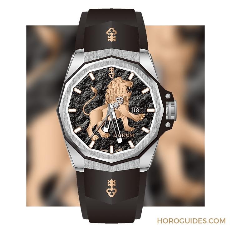 在中世紀歐洲許多國家,獅子就代表著王權。經過數百年淬鍊,獅子的形象更深入藝術、文學與宗教,是歐美文化中非常鮮明的符號。海軍上將系列AC-One雄獅圖騰腕錶面盤上雄獅舉手抬族的姿態與《冰與火之歌》中蘭尼斯特家族的家徽有異曲同工之妙,不同的是崑崙錶更加細膩地把獅子腿部肌肉線條用光澤和明暗差異突顯出來,連鬃毛都細心雕琢出根根分明的層次,加上面盤有如岩石般的特殊效果,獅王的霸氣展露無遺。