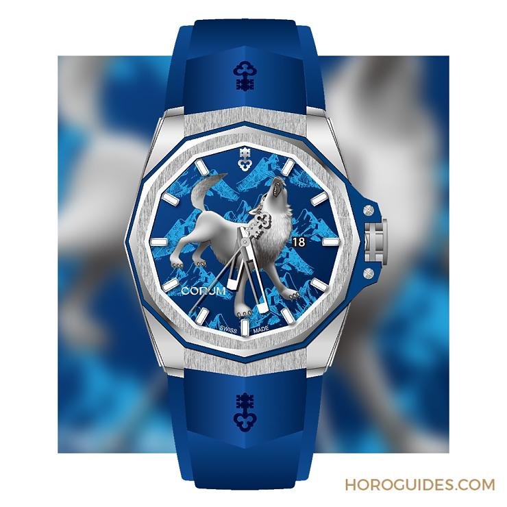 象徵史塔克家族的冰原狼事實上靈感來自已經絕跡的「恐狼」。崑崙錶以這個史前生物為藍圖,在面盤上描摹出對著天空怒嚎的灰狼。不僅神情栩栩如生,脖子和尾巴上也都細細刻畫出鬃毛的紋路。由於史塔克家族族語為「凜冬將至」,面盤特別採用符合臨冬城形象的藍色及雪山山峰圖案。AC-One錶款在錶圈和錶殼之間本有一個用外露螺絲固定的黑色部件延伸出來做為錶冠護橋,這次為了配合整體色調改作藍色,在藍色橡膠帶映襯下更凸顯北方冰原的冷冽。