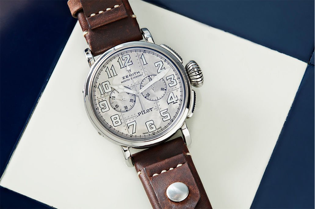 ZENITH真力時的新作又豈可沒有飛行錶?今次飛行新錶就有Pilot Type 20 Chronograph Silver,腕錶的整體外形都是Pilot系列的大錶冠、大時標等的復古設計,特別之處在於其45mm錶殼採用純銀打造,是ZENITH真力時麾下首款純銀Pilot系列計時腕錶,再配以經過特別設計的獨特緞光表面的銀色錶盤,形似飛機機身,突顯金屬的原始之美,是一款特別版的Pilot系列計時腕錶,所以品牌於全球僅限量發行250枚!