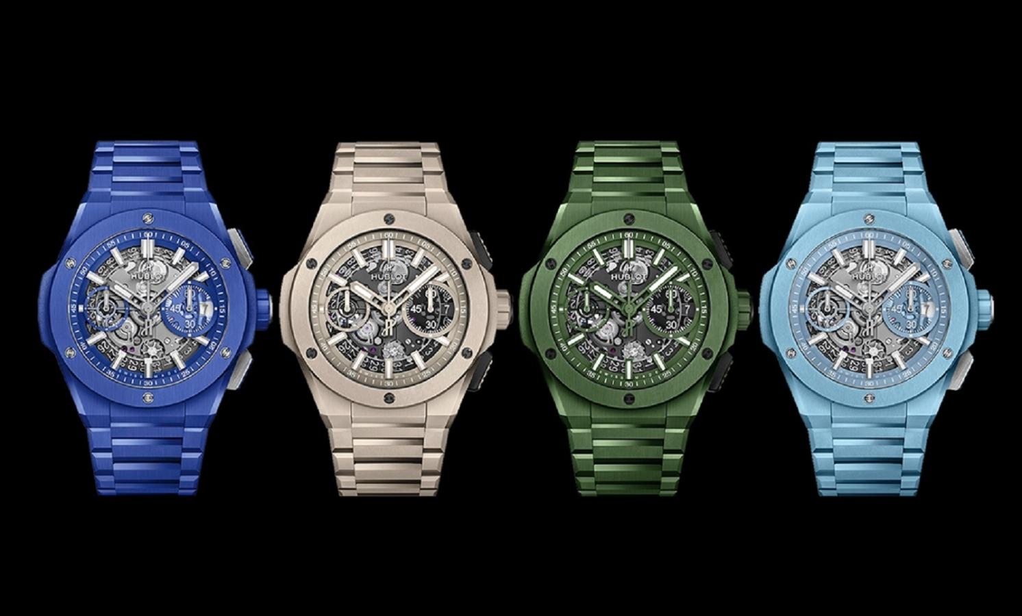 四款各限量250只的全新Big Bang Unico Integral陶瓷鍊帶計時碼錶,設計靈感得自世界各地的四個地點,靛藍取材自摩洛哥馬若雷勒花園(Majorelle Garden)、天藍象徵南太平洋的晴朗天空,砂礫米是加勒比海灘的閃耀砂礫,叢林綠則得自亞馬遜的熱帶雨林,對於陶瓷鮮明色彩的純熟掌握,任Hublot實現設計靈感穿梭世界各國的想像。