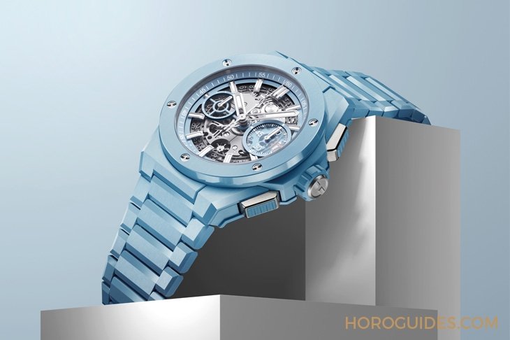 Hublot在2022年《Watches & Wonders》錶展所發表的一系列新作,聚焦在「鍊帶」與「色彩」兩大要素的技術展現,其中,全新四款Big Bang Integral陶瓷鍊帶計時碼錶以靛藍、天藍、砂礫米、叢林綠的飽滿鮮明色調現身,不僅精準鎖定人氣熱烈攀升的主流色選,也再一次彰顯出Hublot在明亮彩色陶瓷研製技術上的一路超前。