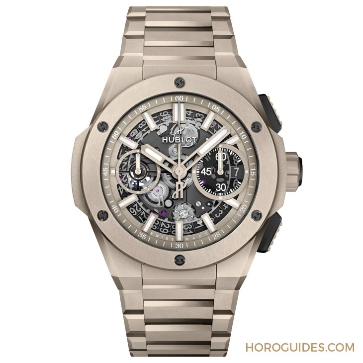 Big Bang Integral陶瓷鍊帶計時碼錶-砂礫米,錶徑42mm/緞面拋光陶瓷材質/HUB1280 Uico自製自動上鍊計時機芯/動力72小時/防水100米/藍寶石鏡面/限量250只